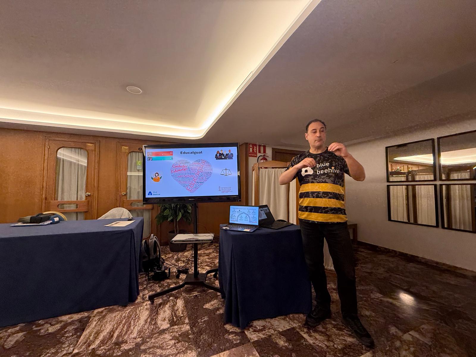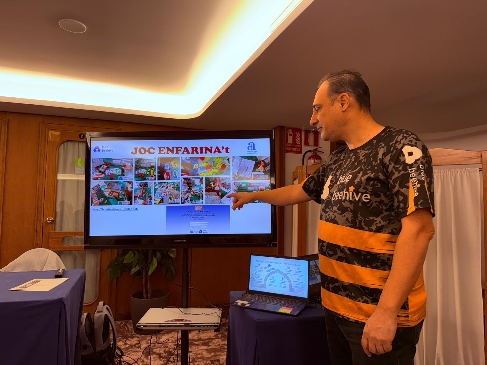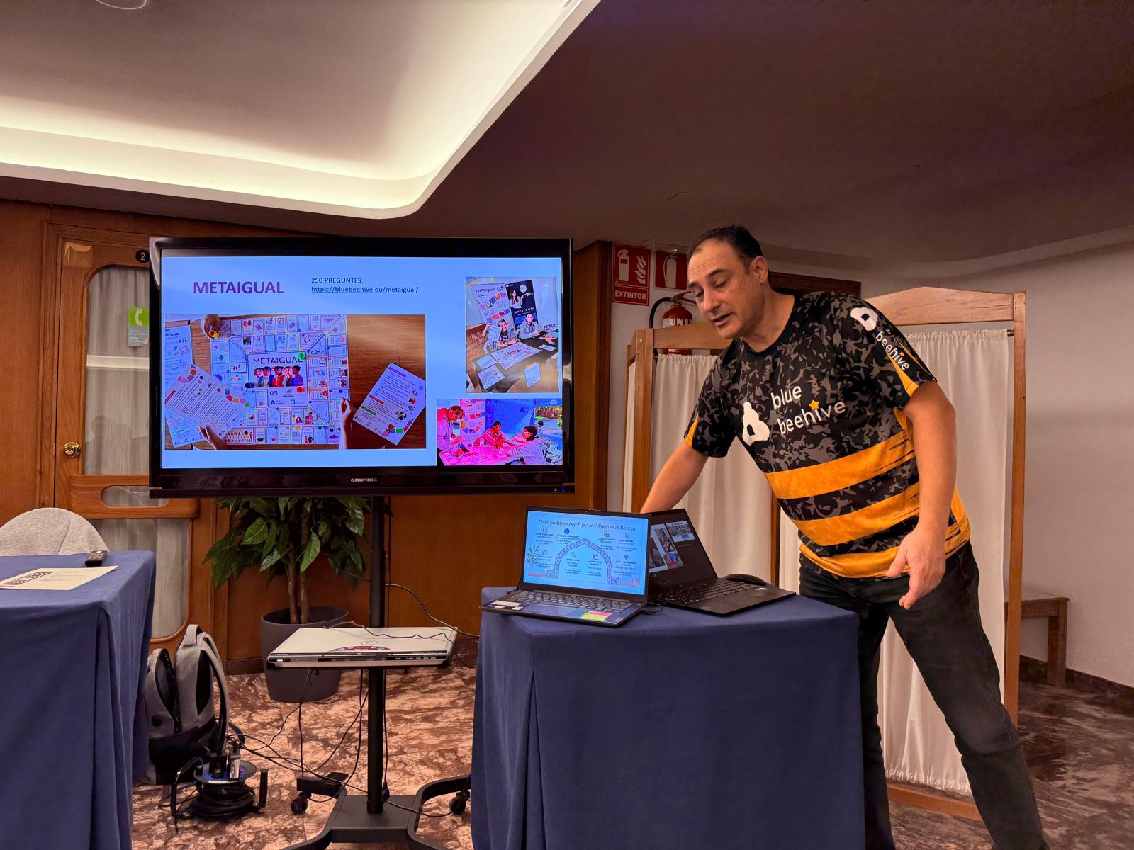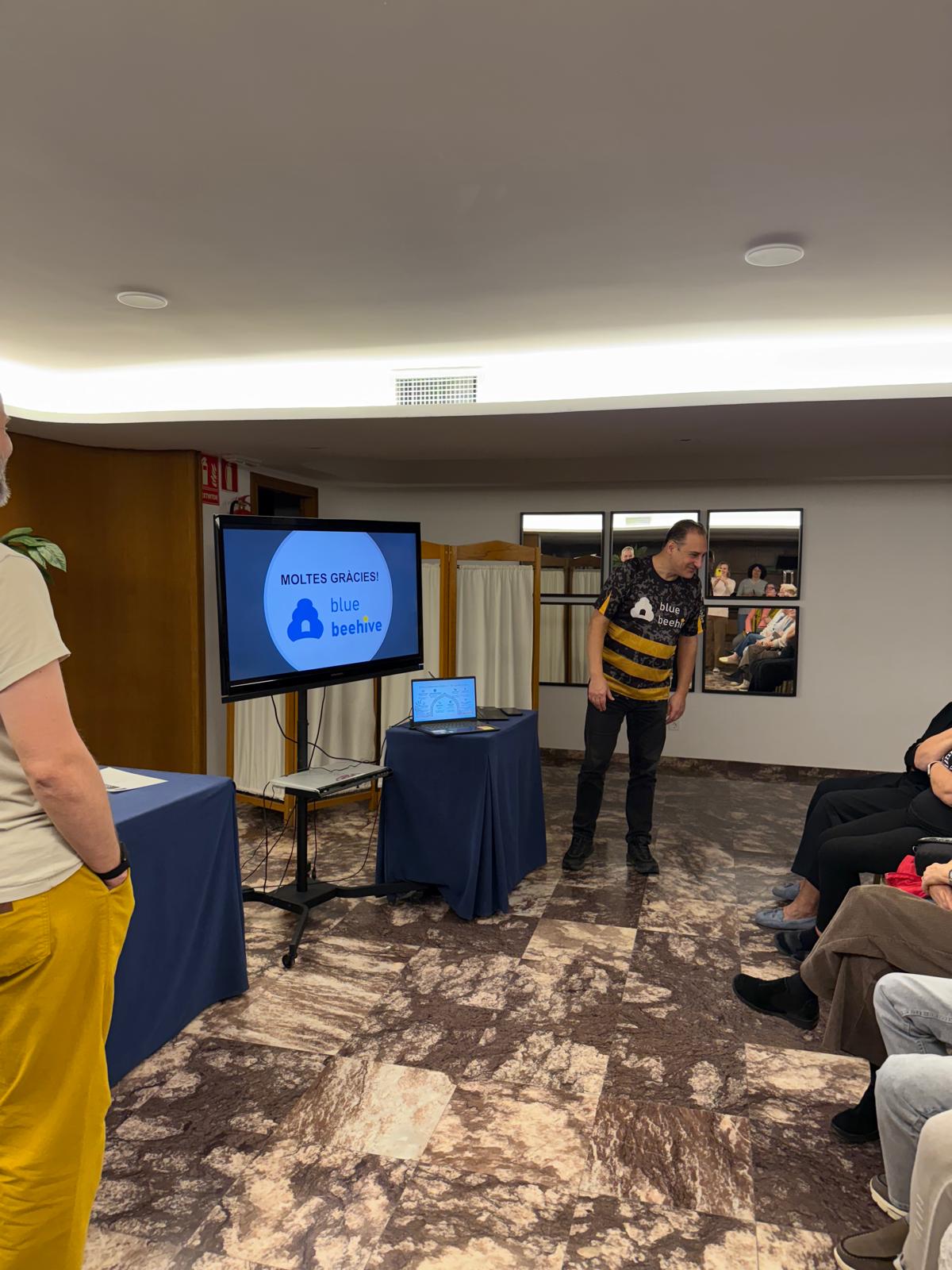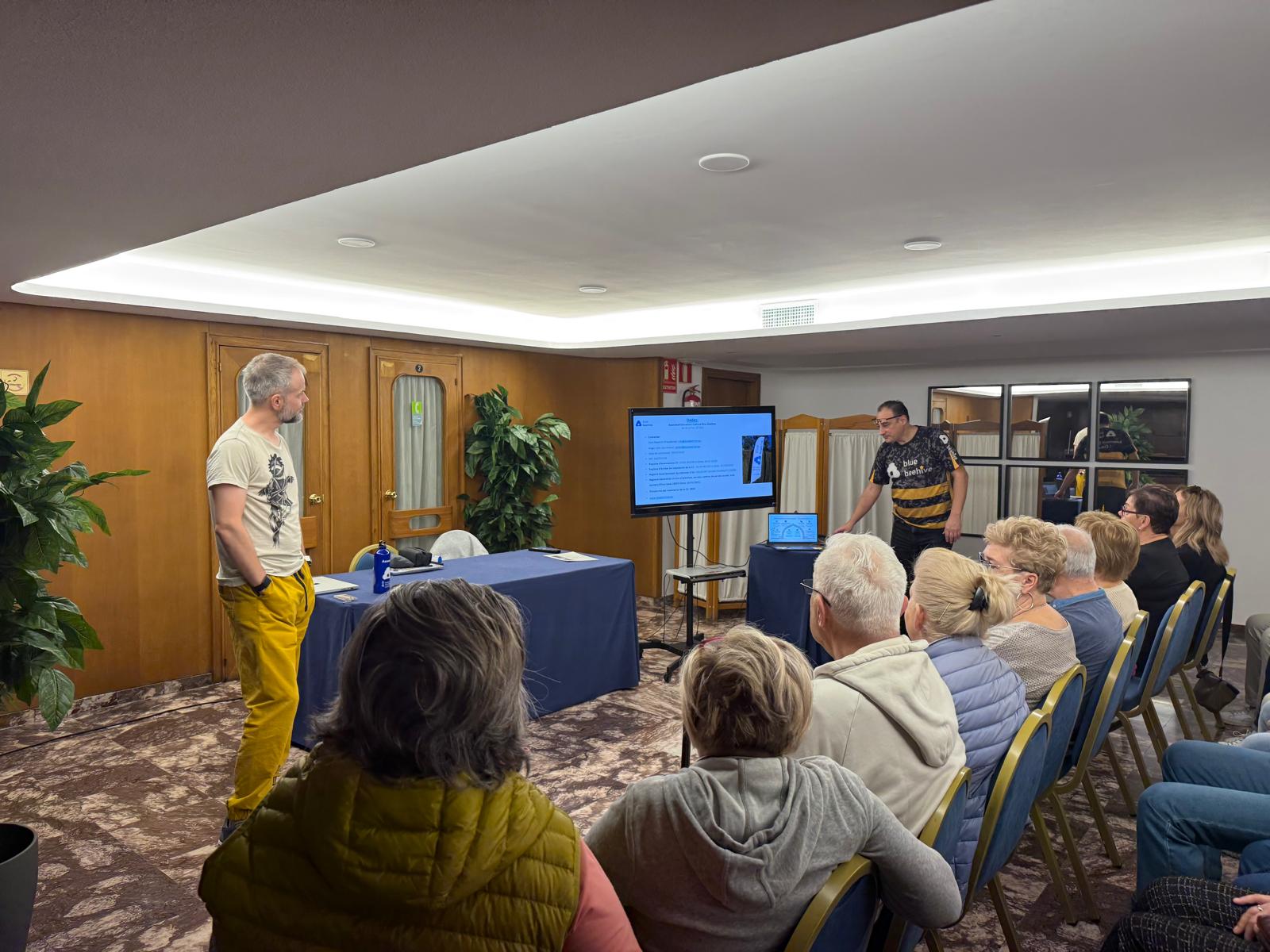 Dzień rozpoczęliśmy od prezentacji działalności naszego partnera – Associació Educativa i Cultural Blue Beehive. Prezentacja pokazała, jak w praktyce realizowane jest wsparcie seniorów poprzez edukację, aktywizację społeczną i rozwój kompetencji cyfrowych. Sesja pytań i odpowiedzi pozwoliła uczestnikom lepiej zrozumieć lokalne dobre praktyki oraz inicjatywy, które realnie odpowiadają na potrzeby osób starszych.